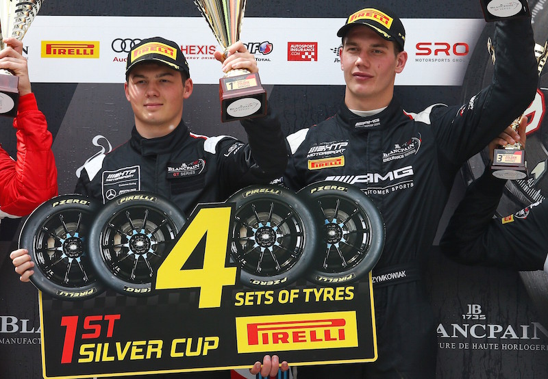 Am Sonntag zeigten die beiden dann ein weiteres Mal ihre außergewöhnliche Klasse und schnappten sich auch im Hauptrennen den Sieg im Silver-Cup. Lediglich kurz nach dem Start gab es eine Schrecksekunde, als Szymkowiak beim Überholversuch einen Markenkollegen touchierte. Der HTP-Mercedes verlor dabei jedoch glücklicherweise keine Position und beide Fahrzeuge konnten das Rennen fortsetzen. Als Achter im Rennen sammelte Schiller nach seiner tollen Performance vor vier Wochen bei den 24 Stunden von Spa ein weiteres Mal auch Punkte für das Gesamtklassement und hat sich auf Rang 19 im Feld der fast 100 Teilnehmer in der Blancpain-Serie nach vorne geschoben.