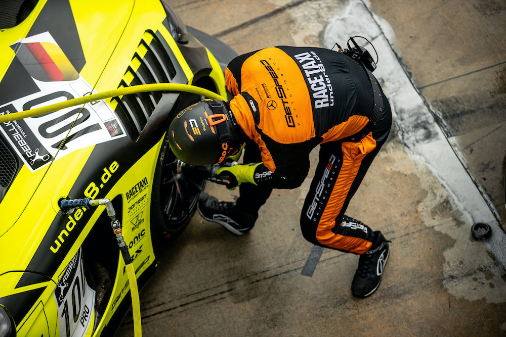 Der erfahrene Maximilian Buhk übernahm den ersten Stint und kämpfte sich im dichten Gedränge der Startphase bis auf 19 nach vorne. Rookie Alessio Lorandi übernahm den Mittelstint, blieb in seinem ersten GT3-Rennen fehlerfrei und übergab das Steuer für den Schlussstint auf Position 15 liegend an Fabian Schiller. Der zweite Boxenstopp war eine Meisterleistung in Sachen Timing und Abläufe. Auf Position sechs kehrte der Mercedes-AMG GT3 von GetSpeed ins Rennen zurück. 52 Minuten vor Ende fand sich Schiller dann unverschuldet im Kiesbett wieder und das Rennen war gelaufen. Ein Verfolger hatte sich verbremst und den 23-Jährigen von der Strecke geschoben.